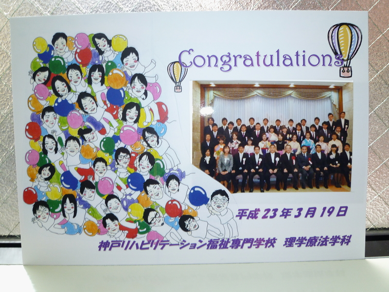 | 平成23年3月17日に卒業式が挙行されました。教員から卒業生に集合写真をプレゼントしました。伊藤望美先生が描いた卒業生の似顔絵入りの写真入れです。 |