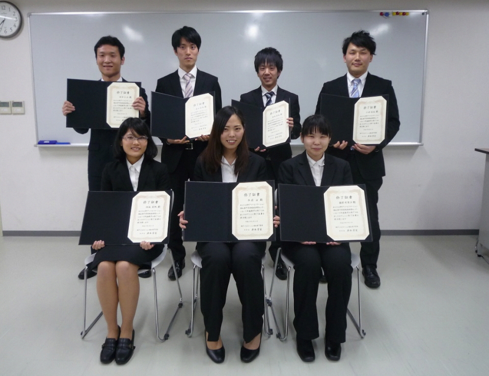 | 平成27年3月26日に平成26年度臨床研修センターの修了式をおこないました。理学療法士として臨床に挑み始めたこの1年、悩みや疑問に対して真摯に向き合う日々だったことでしょう。臨床研修センターで経験した努力することの大切さを忘れずに、治せるセラピストを目指して今後も努力し続けてほしいと思います。 |